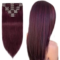 Clip In Real Hair Extensions Wine Red 99j Hair Extensions 8 Pieces 18 Clips Remy Human Hair Straight Hair Thickening 50 Cm 70 G Amazon De Beauty